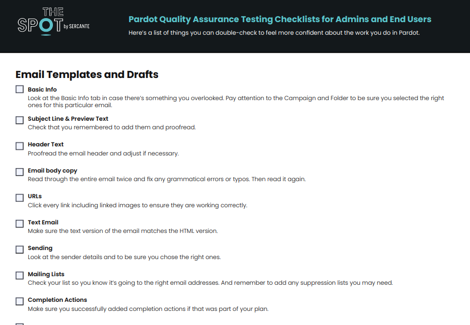 Get a PDF checklist to use for QA testing in Pardot