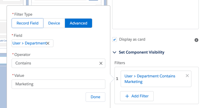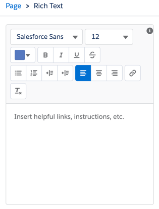 Optionally, add some visibility features to the rich text section. For example, you can show different content based on campaign type or you can show different content based on if the user is Marketing or Sales.