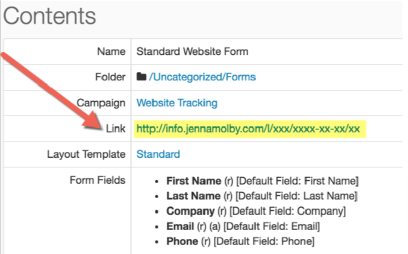 Update the http://info.jennamolby.com/x/xxxxxx/xxxx-xx-xx/xx with the link to your Pardot form. This can be found by navigating to your form in Pardot and copying the URL under Contents > Link.