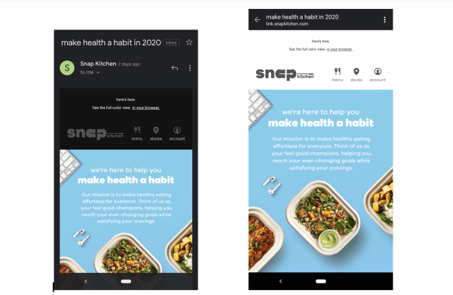 The ability to set this up is a fairly recent development by Gmail. The use of dark mode helps readers draw better contrast for readership and saves energy on your phone. Ultimately, it makes some traditionally white backgrounds in email to black. This can alter designs quite a bit.