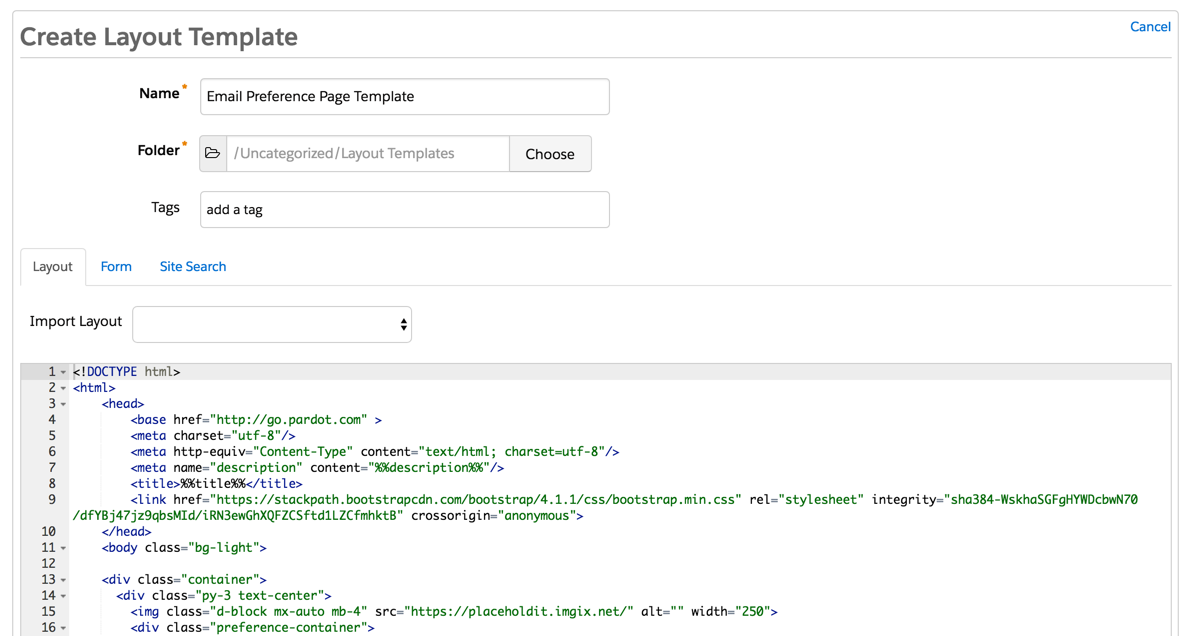 By default, the preference page uses the “Standard” layout template. You can edit the “Standard” template or create a brand new layout template. I recommend creating a brand new layout template that’s only used for the email preferences page.
