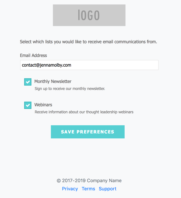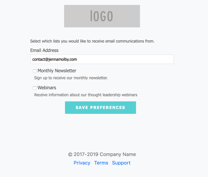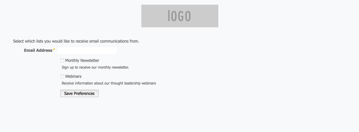The preference page form can be styled as well to match your brand. To style your form, you will need to add some CSS to your layout template.