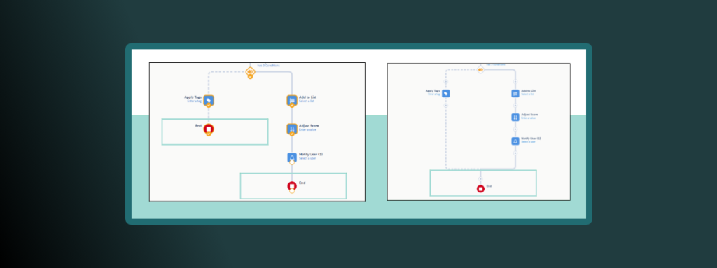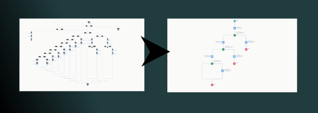 While some logic or the general layout may look different from program to program, the length and complexity totally depends on the purpose of the program and your goals. For some people, having more steps and branches makes it easier to visualize the flow and collect data points, for others as long as prospects complete a specific action, the rest doesn’t matter (you can always use email templates reports to review email KPI’s).