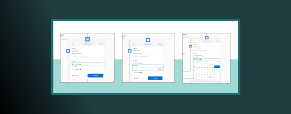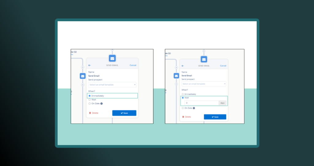 On the other hand, if you make a step “wait” for 3 days, nothing they do will change how fast they move forward. All prospects will be on standby for 3 days (from the time they reach the trigger). This is a hard waiting period. Once the waiting period is up, the program will evaluate their actions and push them through the appropriate node (yes or no).