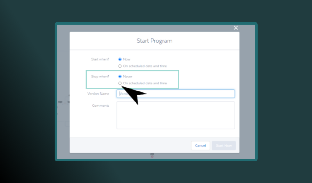Versions are essentially edits you made to the logic of the Engagement Studio program. Think of them as layers. When you make an edit, you can add a description regarding what changed with that round of edits. When you click resume, it does not force prospects to restart the program but to simply continue if nothing has changed (although you can make changes).