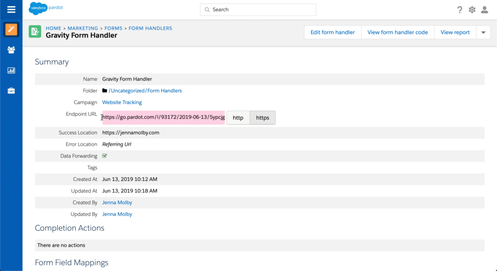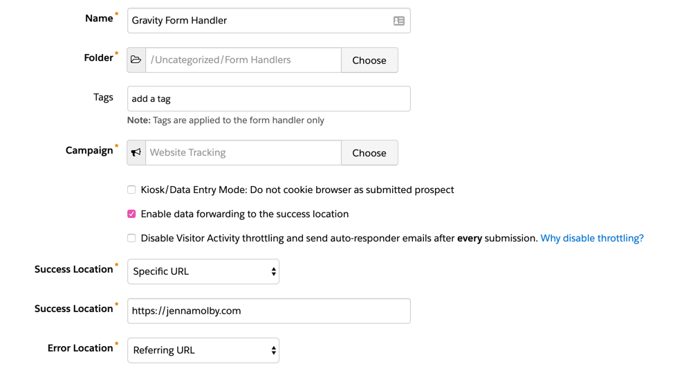 Step 2: Create your Pardot form handler
