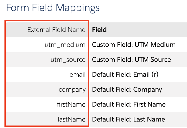 - The Pardot form handler field name is the external field name listed on the form handler. Make sure you create one without spaces. Replace ONLY the highlighted part with the field name, leave the quotes, ampersand, and equal sign.