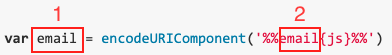 var email = encodeURICompenent (‘%%email{js}%%’)
