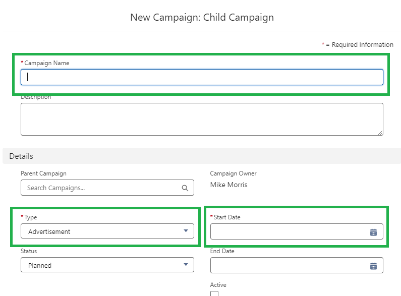 Before we get too deep into testing, let’s consider the types of campaigns that we’ll be creating. Most of us are accustomed to using the default or customized version of the campaign type picklist on the campaign page layout.