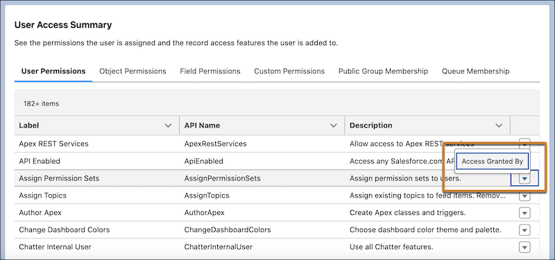 Last release we were able to access a Summary of an individual’s access and permissions directly from the user details record. This enabled you to see what a user had access to without having to spend multiple clicks checking each profile, permission set, public group, or queue.