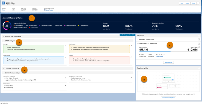 This feature is one our team is very interested in learning more about as new information is released as it can be a huge game changer for Sales teams. The Account Plans feature provides a new UX providing a complete picture of the account with information such as metrics, objectives with actionable metrics, and tabs on growth and development, all from one repository within Salesforce.