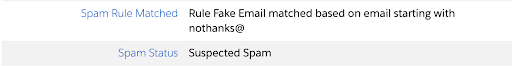 The “Spam Rule Matched” field is also stamped with which spam criteria the Prospect matched.